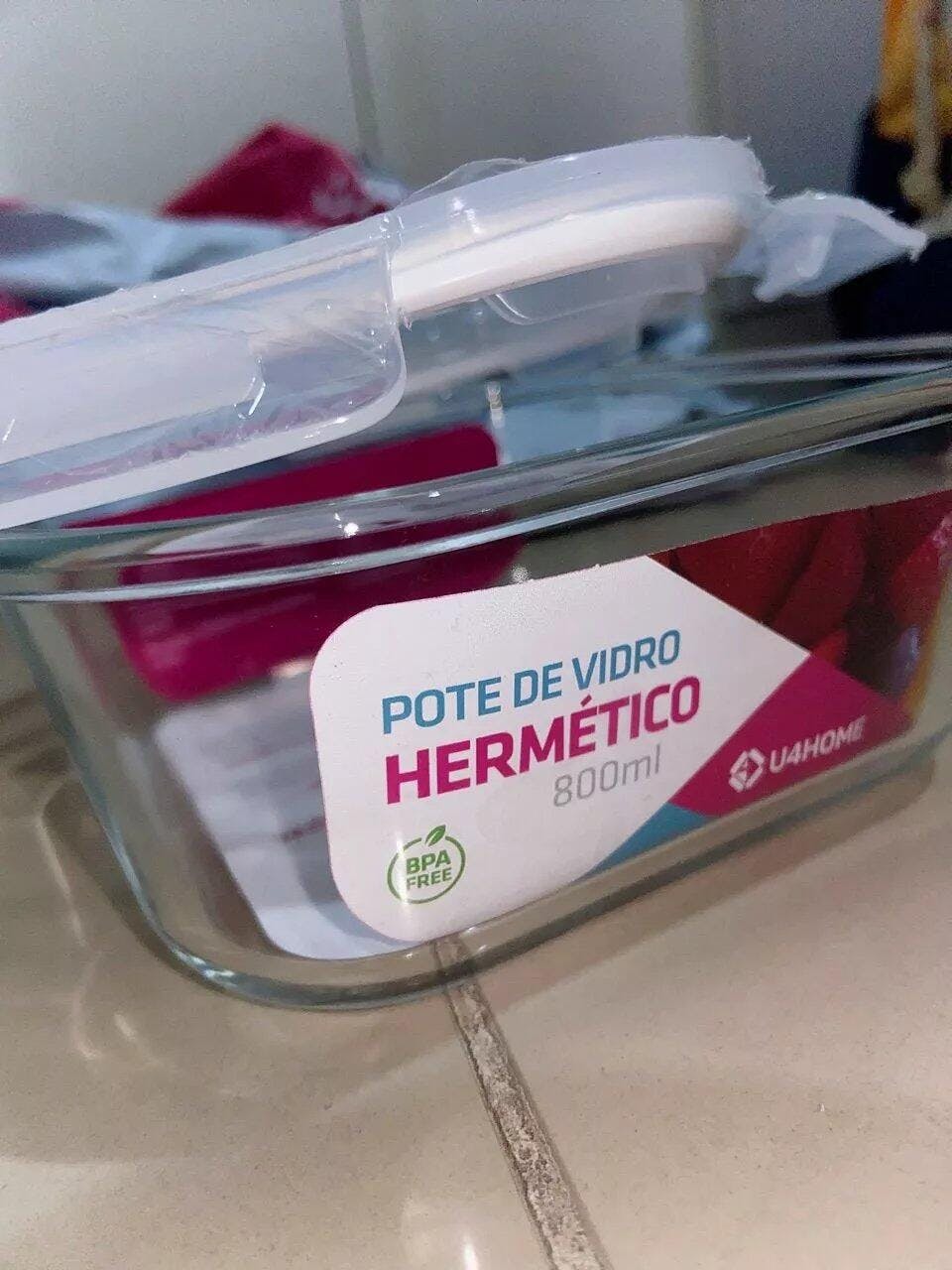 Pote de Vidro Retangular com Divisória e Tampa Hermética 640ml
