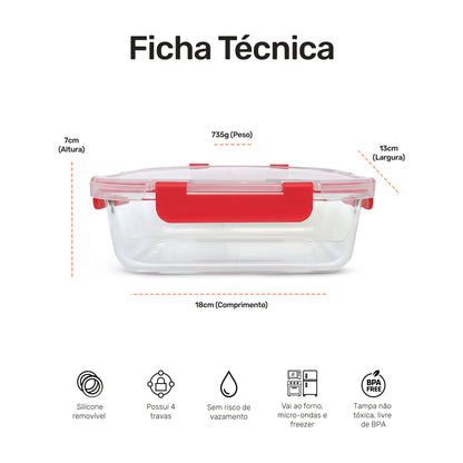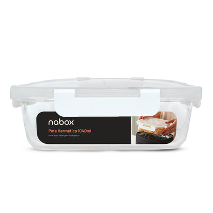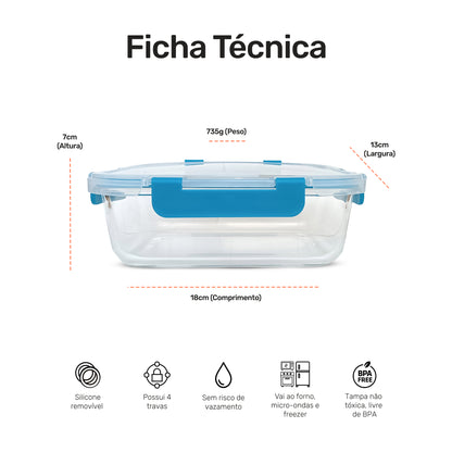 Pote de Vidro Retangular com Tampa Hermética 1040ml