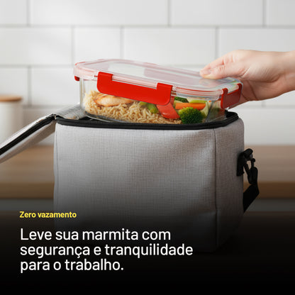 Pote de Vidro Retangular com Divisória e Tampa Hermética 1040ml