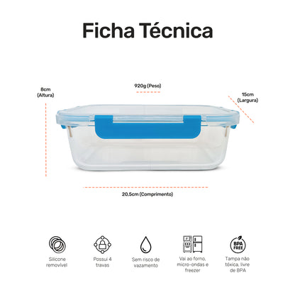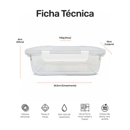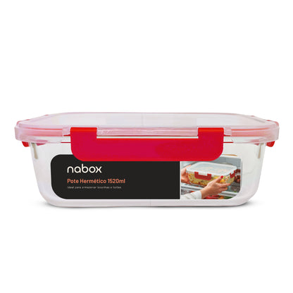 Pote de Vidro Retangular com Tampa Flexivel 1520ml Nabox