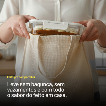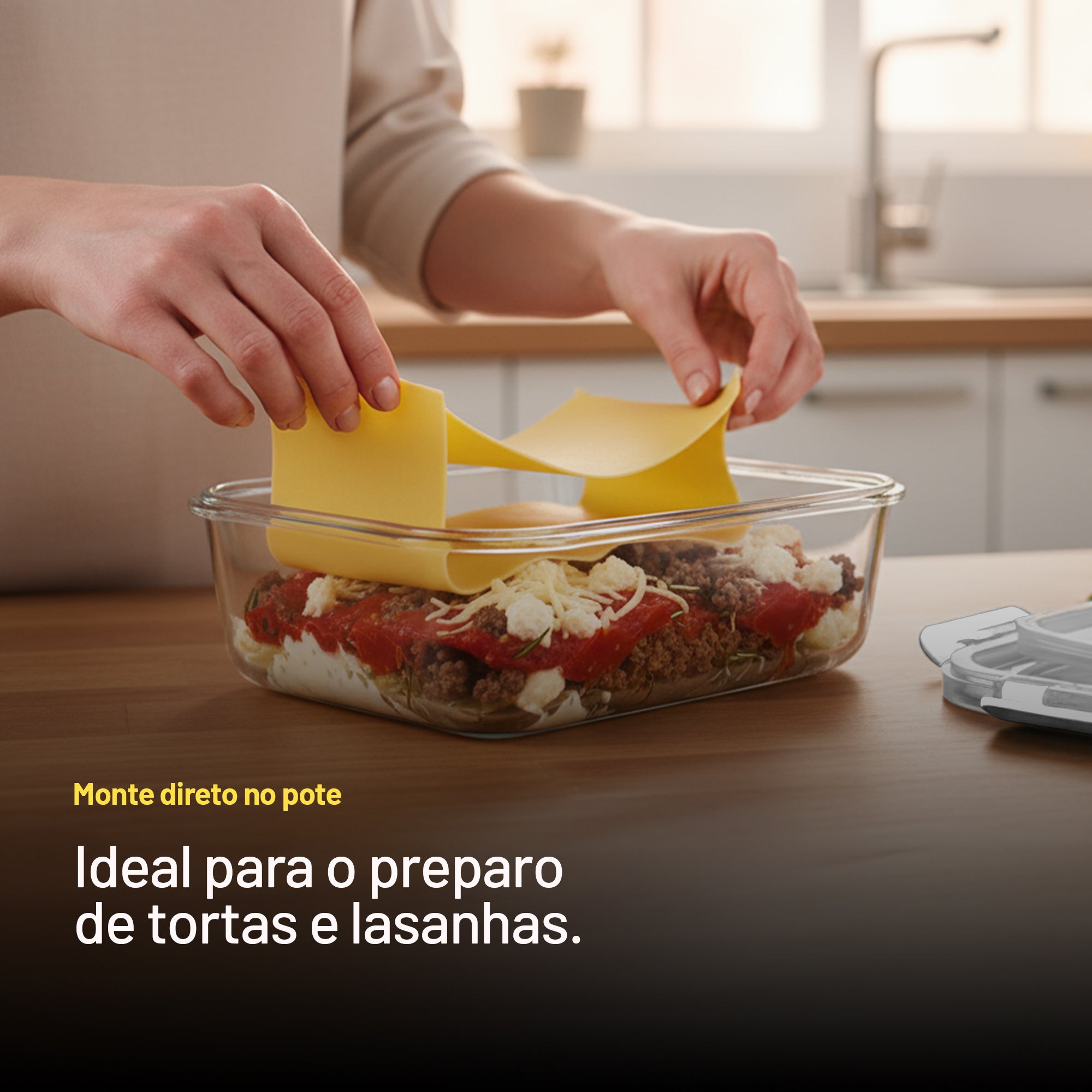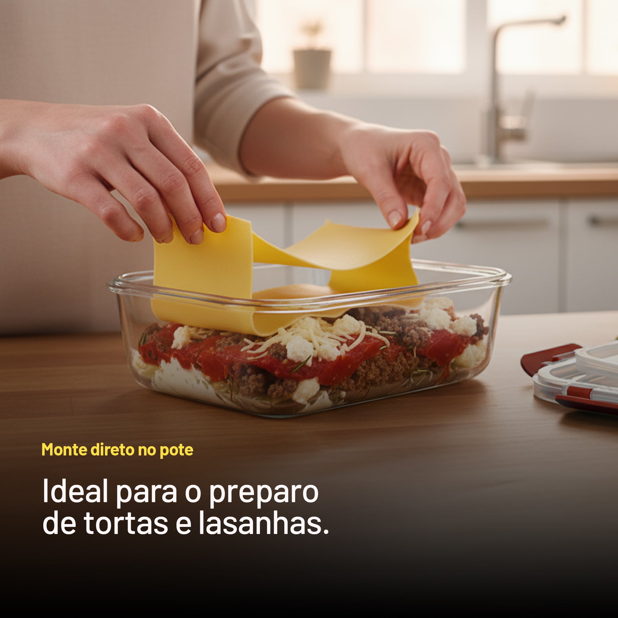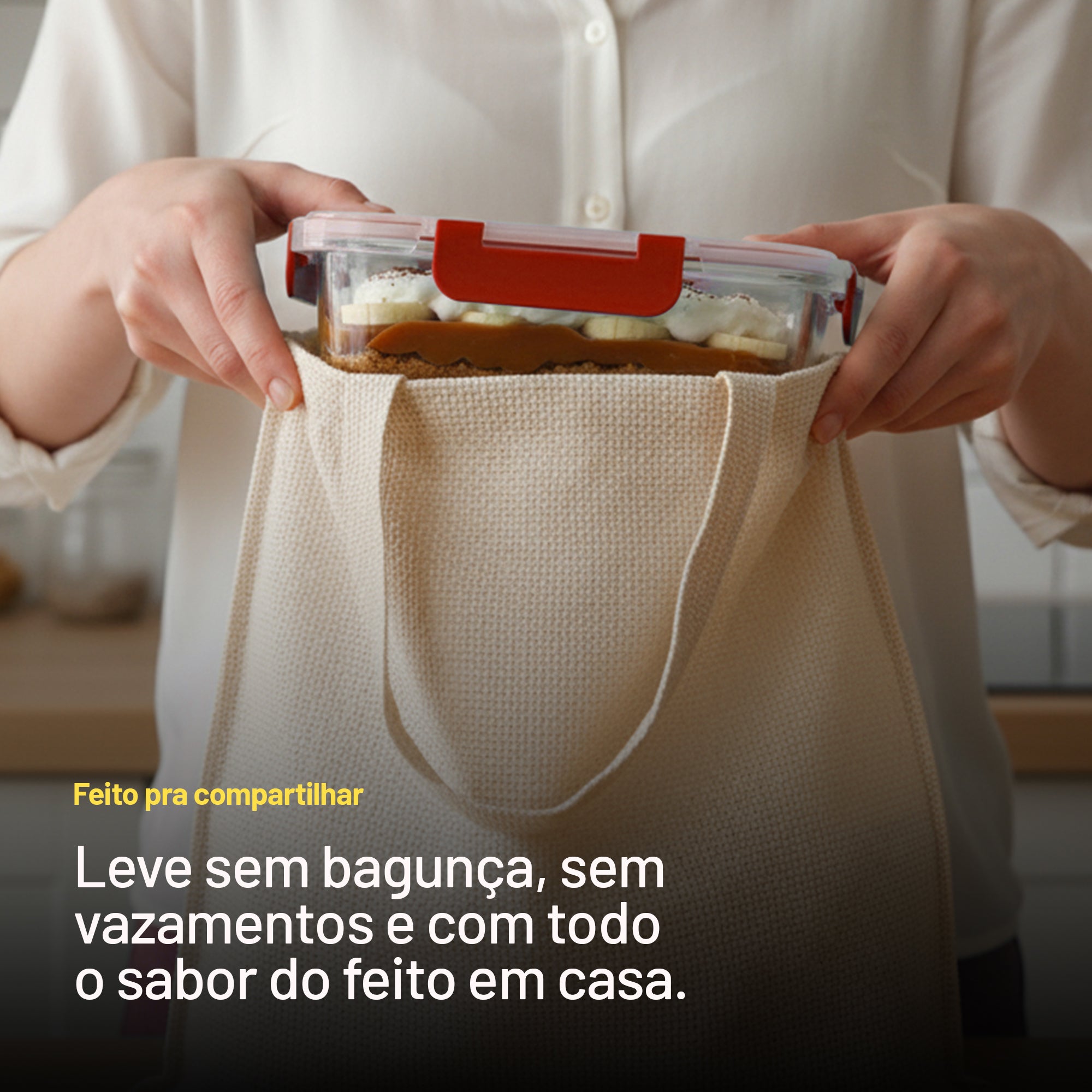 Máxima capacidade, performance premium. A travessa que faltava na sua cozinha. Perfeita para assar, armazenar volumes da família ou compartilhar. As travas Ultra Premium garantem segurança total. Facilite sua rotina!