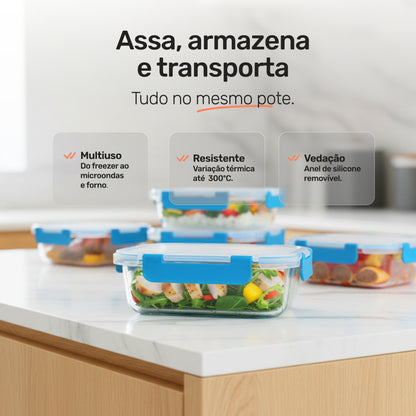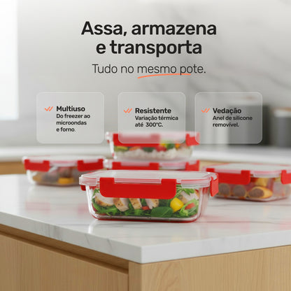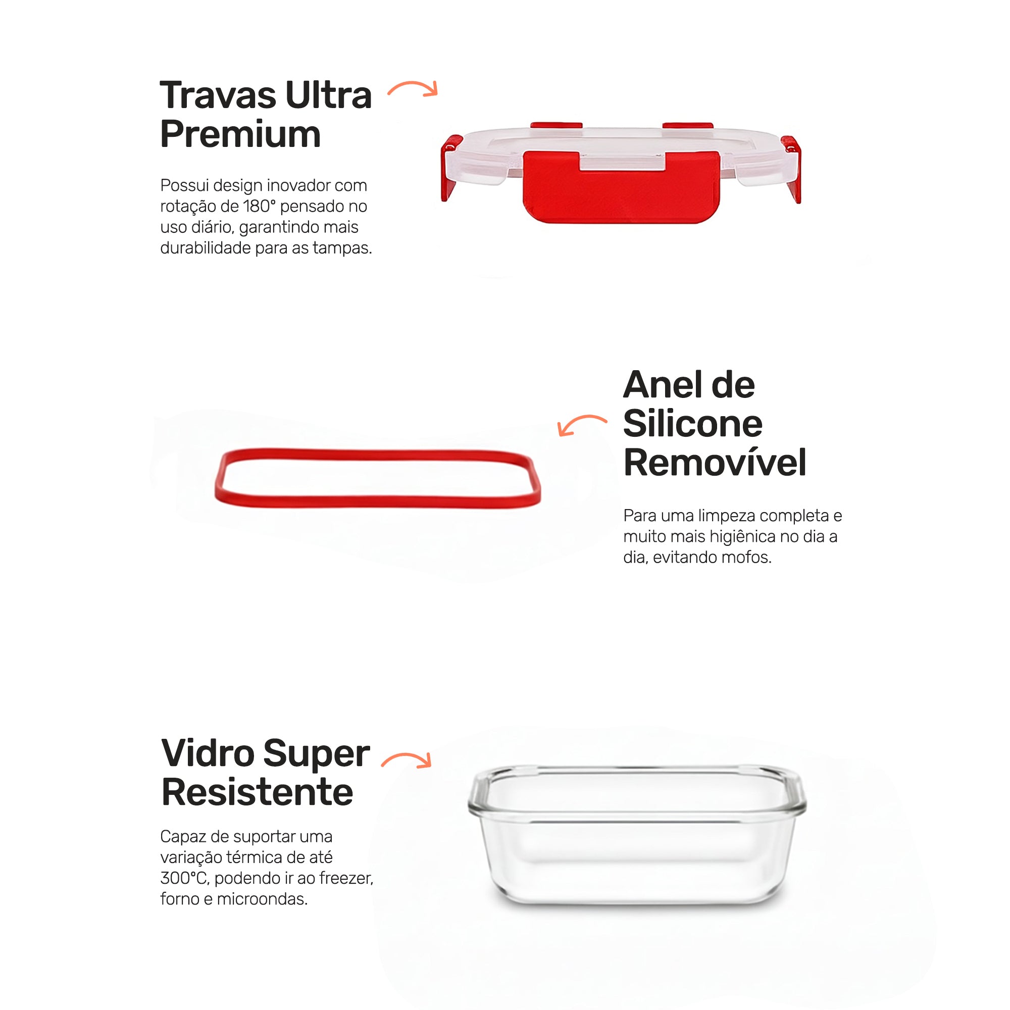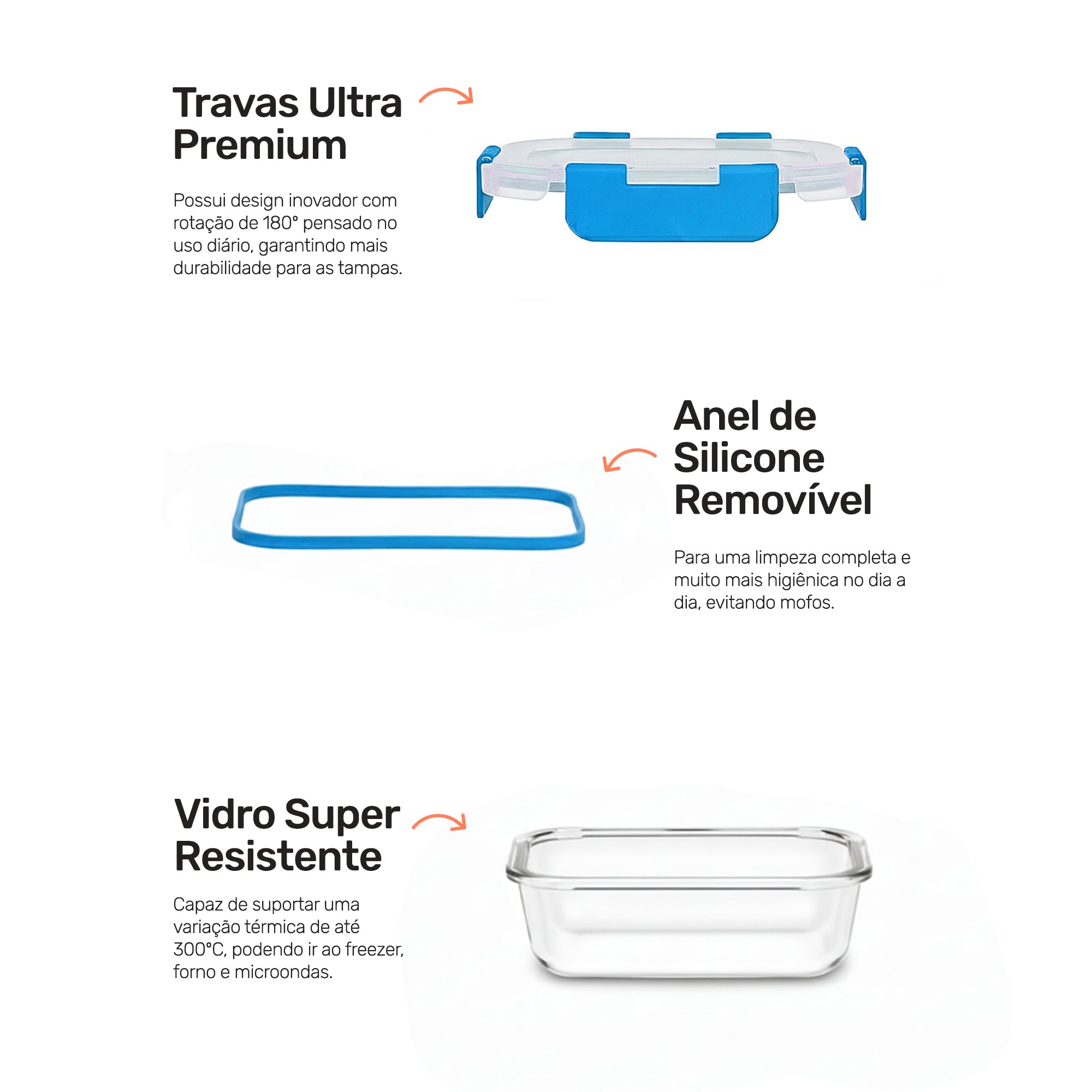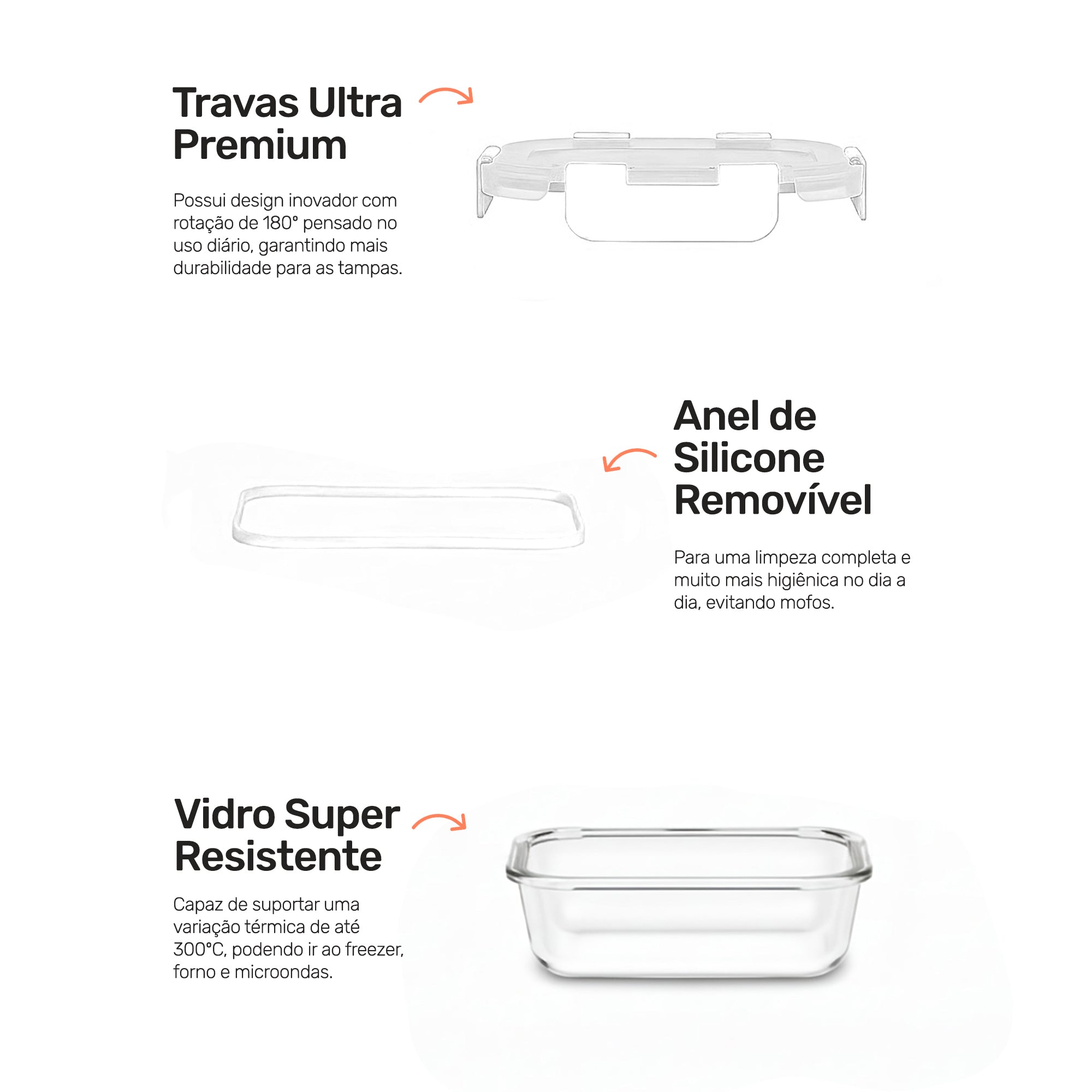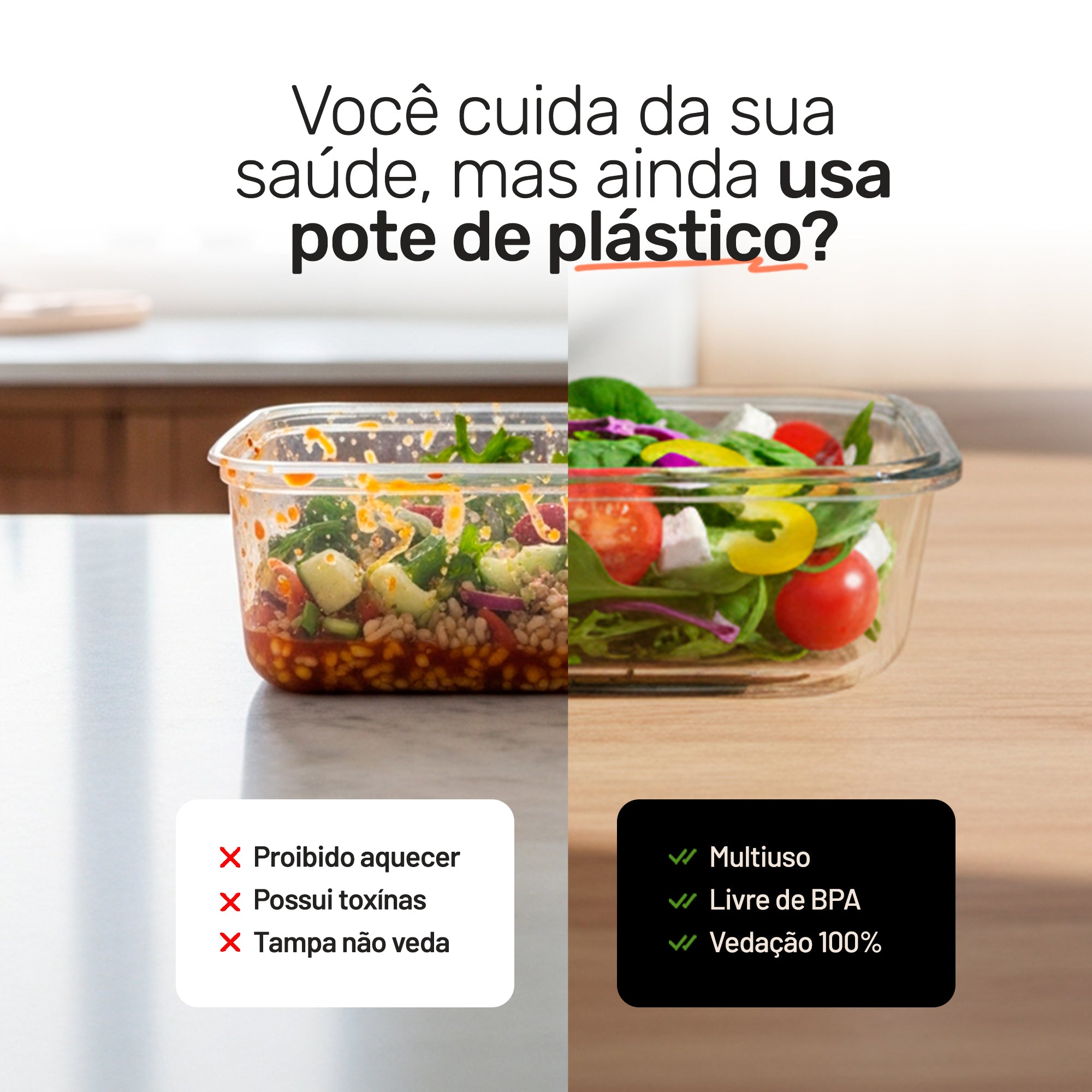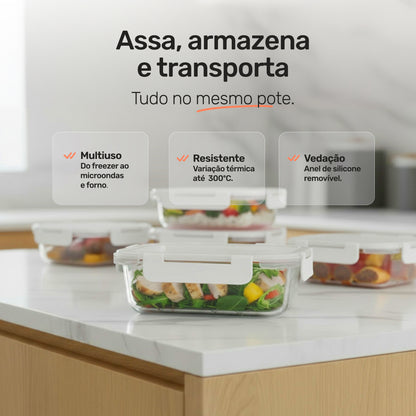 Três potes, uma rotina mais prática! Do lanche ao prato principal, prepare, conserve ou leve com segurança. Garanta o combo completo e otimize seu dia a dia!