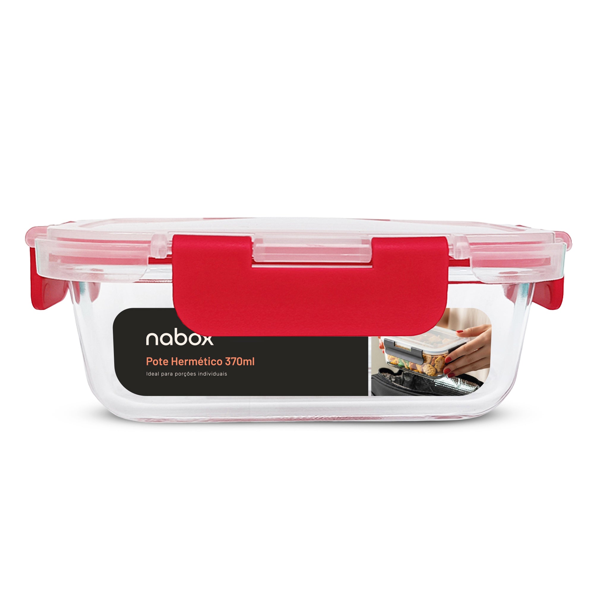 Pote de Vidro Retangular com Tampa Hermética 370ml