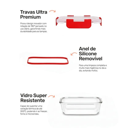 Pote de Vidro Retangular com Tampa Hermética 1520ml